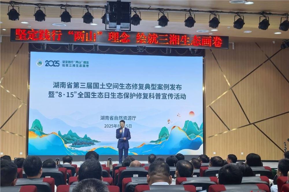 8月15日,湖南省举办第三届国土空间生态修复典型案例发布暨“8·15”全国生态日生态保护修复科普宣传活动,集中展示我省在国土空间生态修复方面的创新实践和丰硕成果。李彦冰 摄) 活动现场发布并展示了湖南省第三届国土空间生态修复十二大优秀案例及七大典型案例。