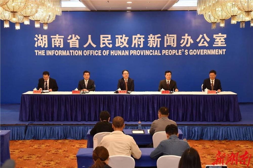 省发改委主任黄东红在会上介绍,湖南奋力书写“十四五”答卷,取得“三个标志性突破”。10月15日,湖南“十四五”答卷系列主题首场新闻发布会在长沙召开。童迪 摄 打造国家重要先进制造业高地实现标志性突破。 打造具有核心竞争力的科技创新高地实现标志性突破。