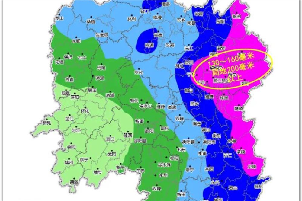 7月24日,长沙城区最高气温41.3℃! 很多小伙伴都在盼望下雨的消息 暴雨、大暴雨即将抵达! 受台风“格美”外围云系和高空槽共同影响 7月26日至27日, 湘东有暴雨到大暴雨 需加强防范应对! 据省气象局预报,受3号台风“格美”外围云系和高空槽共同影响,7月26日至27日,湘东局地暴雨到大暴雨,累计雨量50毫米至80毫米,岳阳、长沙、株洲等地130毫米至160毫米,局地可达200毫米以上。