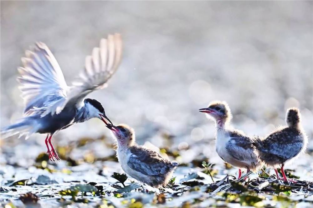 温馨又有爱!镜头拍下须浮鸥投喂幼崽瞬间