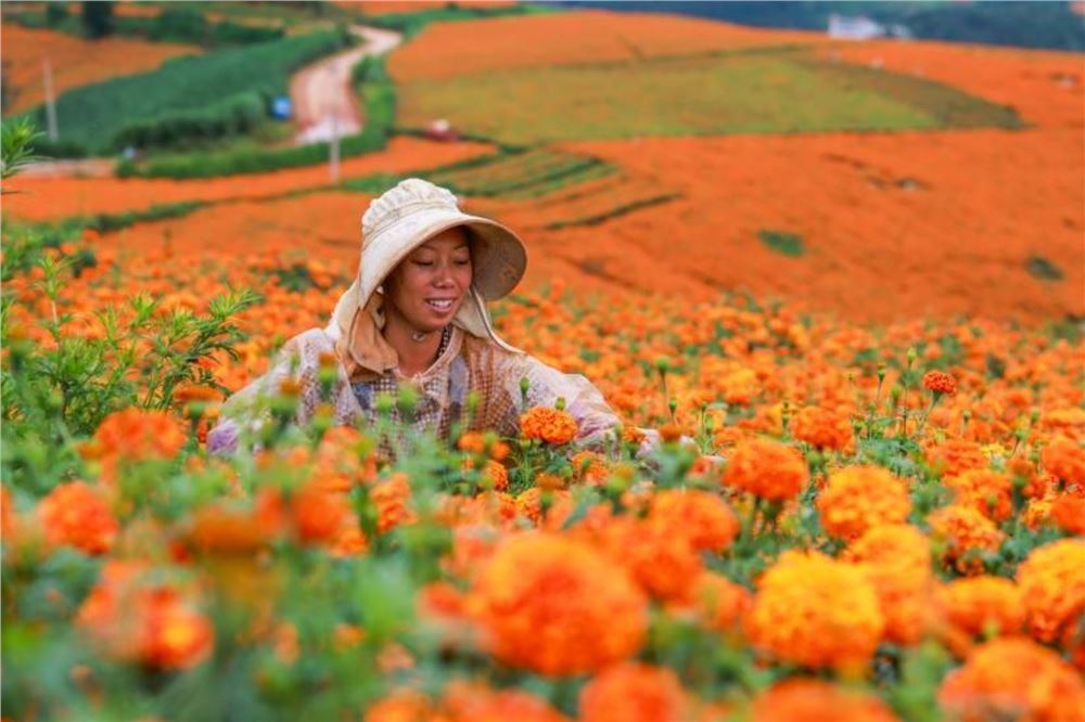 云南:万寿菊花开成海 乡村致富“走花路”
