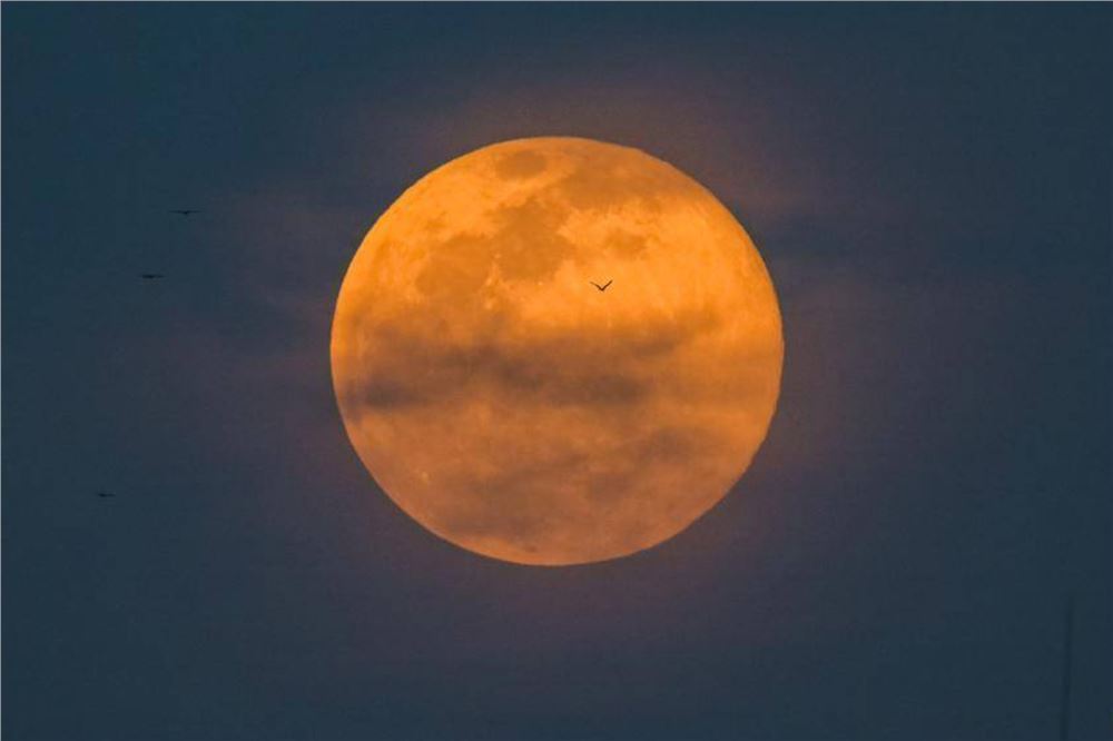 当日,“超级月亮”现身天宇。这是全年最接近地球的满月,因此也是年度最大满月。??新华社发这是11月5日在科威特首都科威特城拍摄的“超级月亮”。