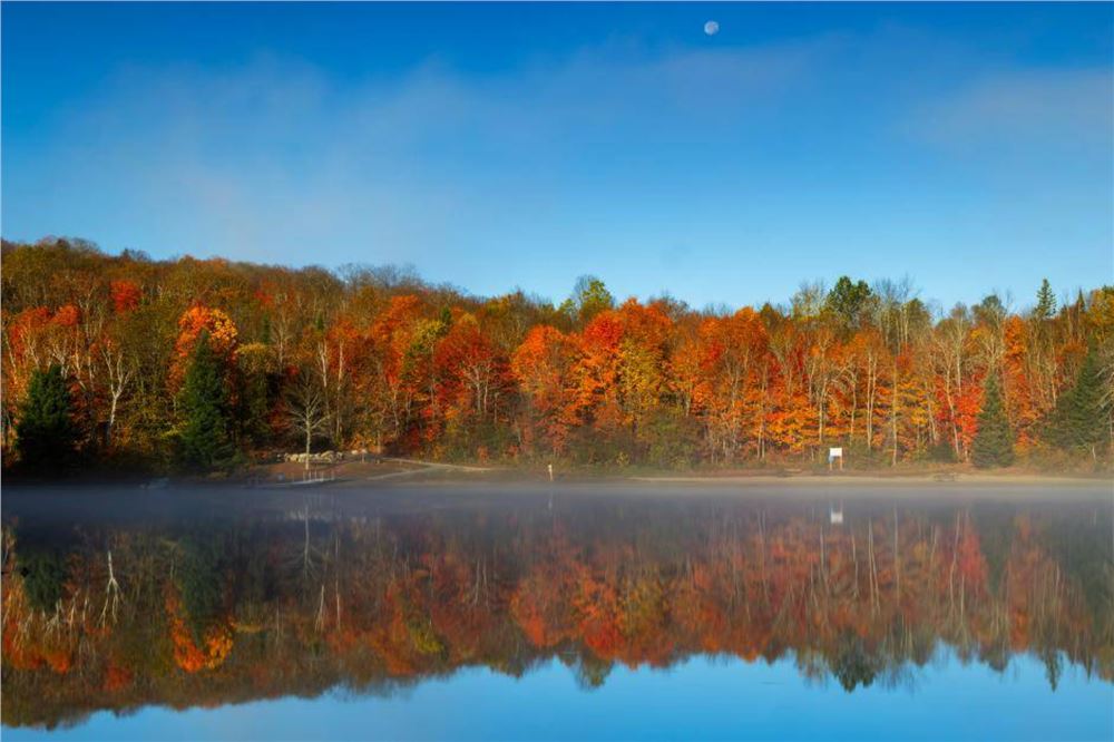 金秋十月,加拿大秋意正浓,山水迷人。??这是10月9日在加拿大安大略省亨茨维尔一处公园拍摄的秋色。