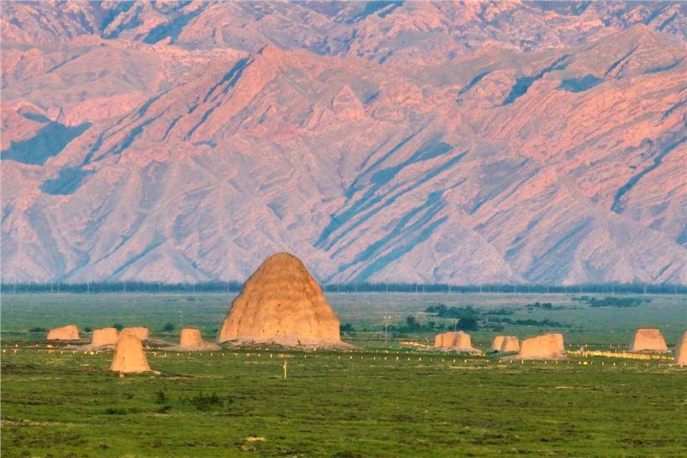 在宁夏银川西夏陵景区,清晨的霞光映照着远处的贺兰山,雄伟壮丽。以上图片:2025年8月30日在宁夏回族自治区银川市拍摄的西夏陵景区风景。