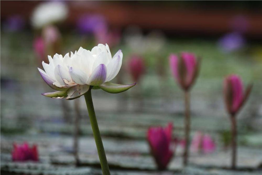 初秋时节,广西南宁市人民公园培育的900余株睡莲陆续绽放,吸引游人前来观赏。??8月31日在广西南宁市人民公园拍摄的睡莲。