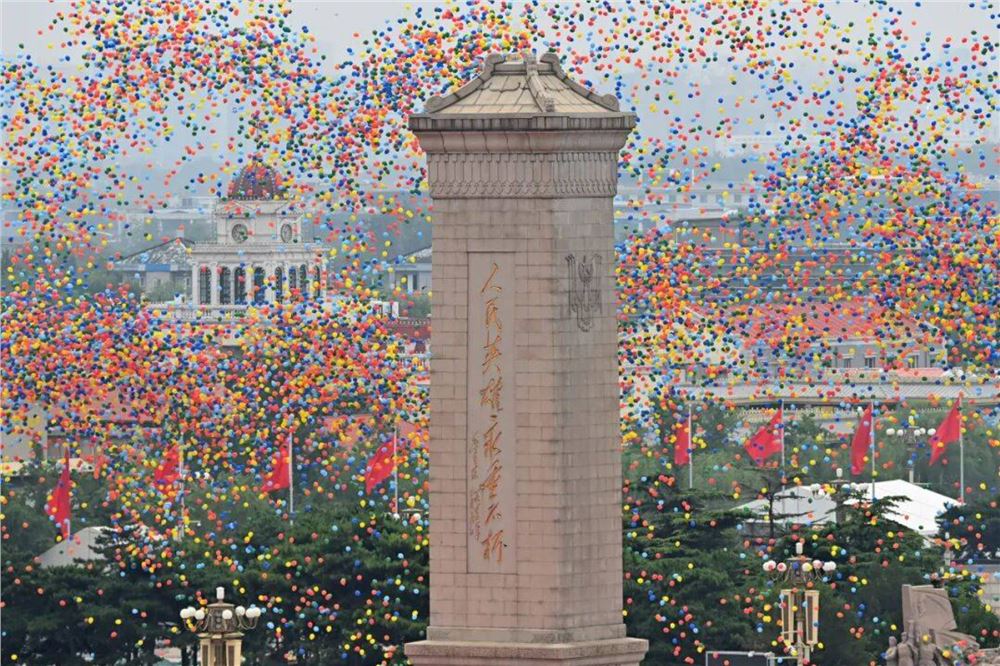 9月3日,纪念中国人民抗日战争暨世界反法西斯战争胜利80周年大会在北京天安门广场隆重举行。这是国旗护卫队官兵护卫着五星红旗,从人民英雄纪念碑行进至广场北侧升旗区。这是中国人民解放军联合军乐团在演奏。这是合唱团在演唱。这是礼炮在天安门广场鸣响。这是国旗护卫队从人民英雄纪念碑基座出发,走向旗杆基座。