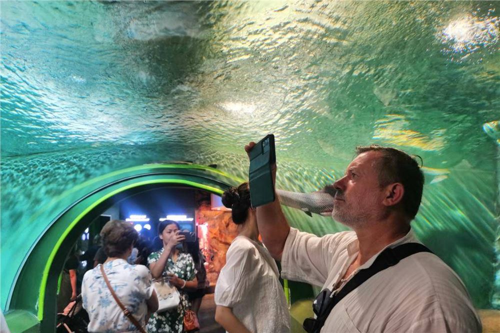 新华社上海10月29日电 记者从上海市文化和旅游局获悉,2025年前三季度,上海接待入境游客632.6万人次,同比增长37.1%。数据显示,2025年前9个月,上海接待外国游客474.7万人次,同比增长49.3%。9月14日,入境游客品尝上海特色小吃。8月27日,一名入境游客参观上海海洋水族馆。上海文旅部门预计,今年全年上海接待入境游客量有望超过800万人次。