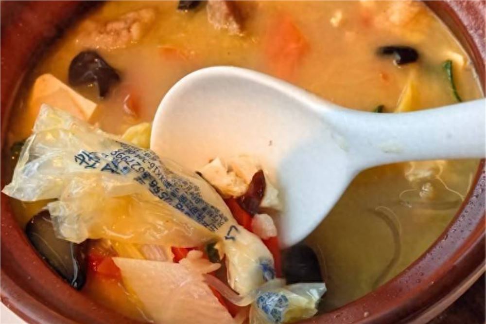 9月17日,有网友发布视频爆料,其在北京四季民福烤鸭店(故宫店)就餐时,从一份汤菜中捞出一个近乎完整的塑料包装袋。 针对网友关心的“涉事菜品是否为预制菜”,工作人员明确否认,“不是预制菜,其他不方便透露”。 至于事件的后续处理,该工作人员表示,“本餐厅有承诺,菜品不满意可无条件退换”,称已为涉事顾客更换了该菜品。