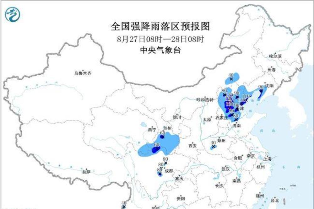中央气象台8月27日06时继续发布暴雨黄色预警:??预计,8月27日08时至28日08时,内蒙古东南部、辽宁西南部、河北大部、北京、天津、山东北部、青海南部、甘肃中南部、川西高原北部、四川盆地西部和南部以及广西南部沿海、广东南部沿海、海南岛等地部分地区有大到暴雨,其中,河北中部和东北部、北京西南部等地局地有大暴雨。上述部分地区伴有短时强降水,局地有雷暴大风等强对流天气。??