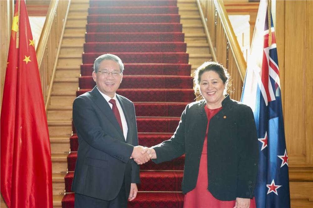 当地时间6月13日下午,国务院总理李强在惠灵顿总督府会见新西兰总督基罗。新华社记者 丁海涛 摄 李强向基罗总督转达习近平主席的亲切问候。李强表示,中新建交52年来,两国友谊历久弥新,双边关系取得长足发展。中方愿同新方携手努力,打造中新全面战略伙伴关系升级版,更好造福两国乃至世界人民。基罗表示,新方愿同中方继续深化各领域合作,加强人文交流,进一步增进两国人民之间的友谊,共同应对气候变化等全球性问题。