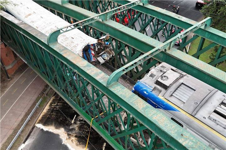 新华社发 新华社布宜诺斯艾利斯5月10日电阿根廷铁路公司10日在社交媒体上发布消息说,两列火车当天上午在首都布宜诺斯艾利斯的一座铁路桥上相撞,造成至少90人受伤。90名伤者中30人已被送往附近医院接受治疗,其余伤者经诊断无需入院,在现场接受了治疗。5月10日,救援人员在阿根廷首都布宜诺斯艾利斯火车相撞事故现场附近转运伤员。