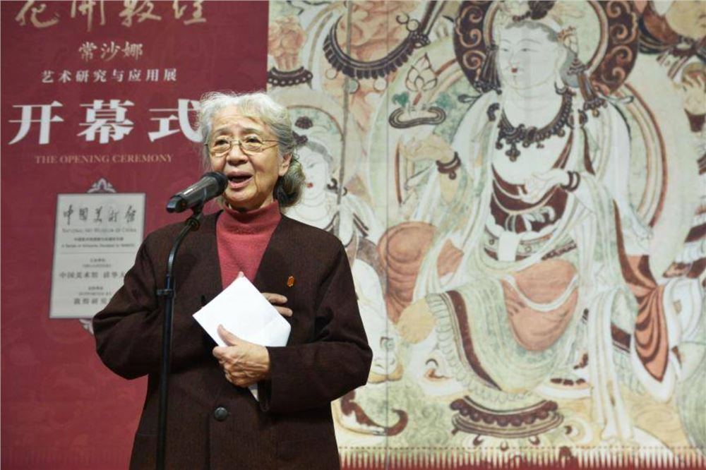经她的手,古老的敦煌文化走进当代的烟火人间。??参与筹备工作的常沙娜,在这里结识了梁思成、林徽因夫妇。1959年,常沙娜再次接到任务,为人民大会堂宴会厅设计天顶装饰。她想到了熟悉的敦煌藻井图案。每次到敦煌,常沙娜总说“回了老家”。常沙娜一生都在研究敦煌图案。常沙娜在“花开敦煌——常沙娜艺术研究与应用展”开幕式上致辞。2023年10月,92岁的常沙娜再次回到敦煌。