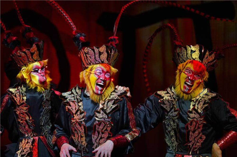 11月14日晚,在美国旧金山,《猴王悟空》主创人员在首演后谢幕。??改编自中国古典名著《西游记》的歌剧《猴王悟空》14日晚在美国旧金山举行全球首演,将孙悟空的故事带上美国歌剧舞台。??新华社记者 吴晓凌 摄11月12日晚,歌剧《猴王悟空》在美国旧金山进行最后一次彩排。