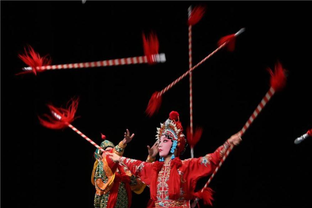 10月12日,浙江婺剧艺术研究院的演员在表演婺剧。浙江金华古称婺州,婺剧俗称“金华戏”,是浙江省地方戏曲剧种之一,2008年被列入第二批国家级非物质文化遗产名录。1956年,刚成立的浙江婺剧团即着手抢救婺剧传统遗产,收集记录了众多剧目、唱腔和器乐曲牌,留存了大量传统脸谱、戏装图样等珍贵资料。2011年,浙江婺剧团更名为浙江婺剧艺术研究院。10月12日,浙江婺剧艺术研究院的演员在排练厅内练习基本功。