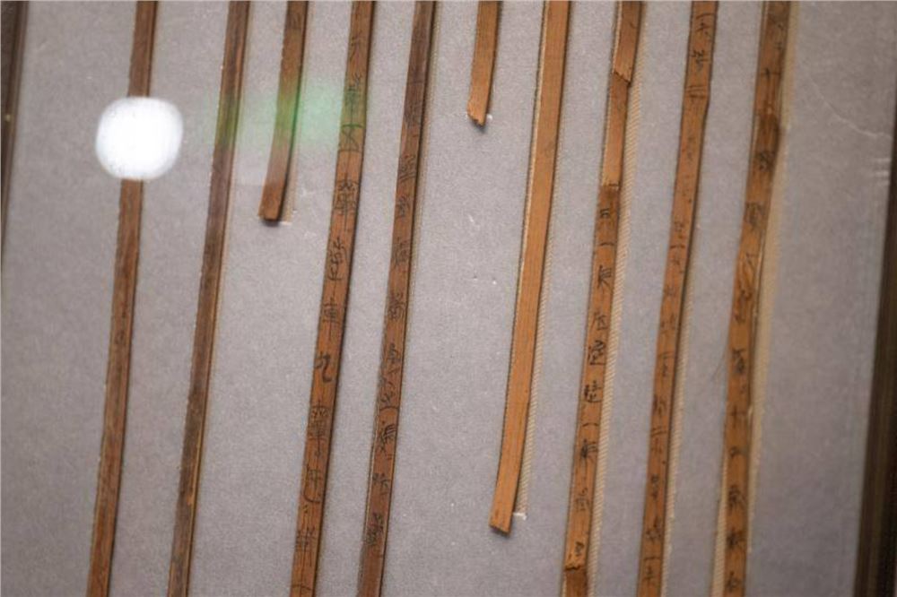10月28日拍摄的我国迄今发现时代最早的竹简——曾侯乙墓竹简。10月28日,湖北省博物馆联合全国多家文博机构推出的《简读中国——中国出土简牍展》开幕。本次展览展出了曾侯乙墓竹简、战国楚简、睡虎地秦简、里耶秦简、敦煌悬泉汉简等230件(套)重要简牍文物,其中曾侯乙墓竹简是迄今发现时代最早的竹简,距今2400多年。新华社记者 肖艺九 摄10月28日,参观者在《简读中国——中国出土简牍展》上参观。