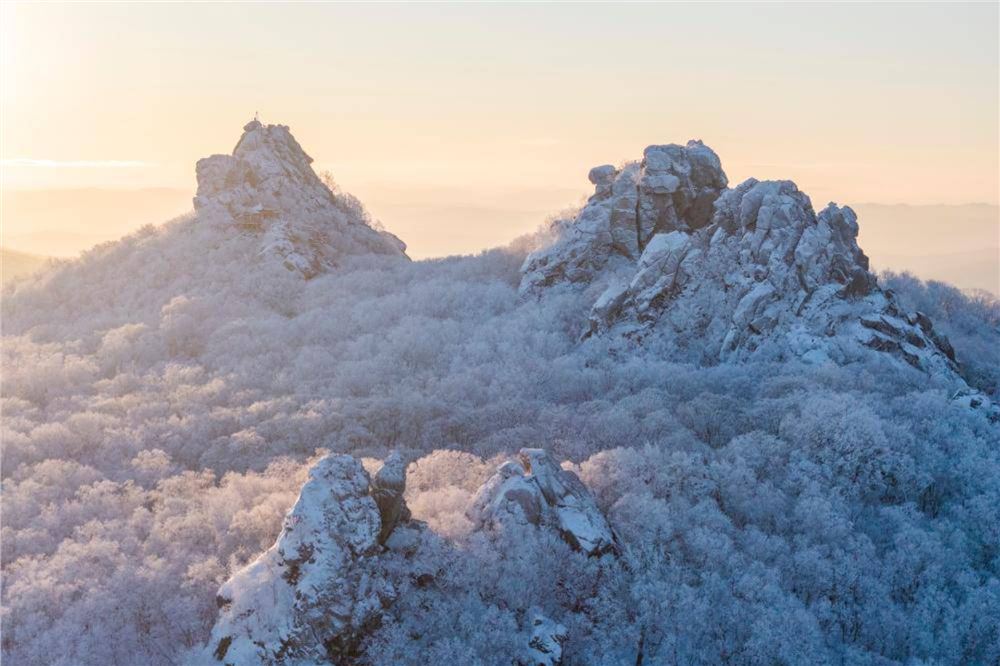 1月25日晨,位于黑龙江省双鸭山市境内的黑龙江七星山国家森林公园出现雾凇景观,朝晖映射下,霜华满山,蔚为壮观。??1月25日在黑龙江七星山国家森林公园拍摄的雾凇景观。