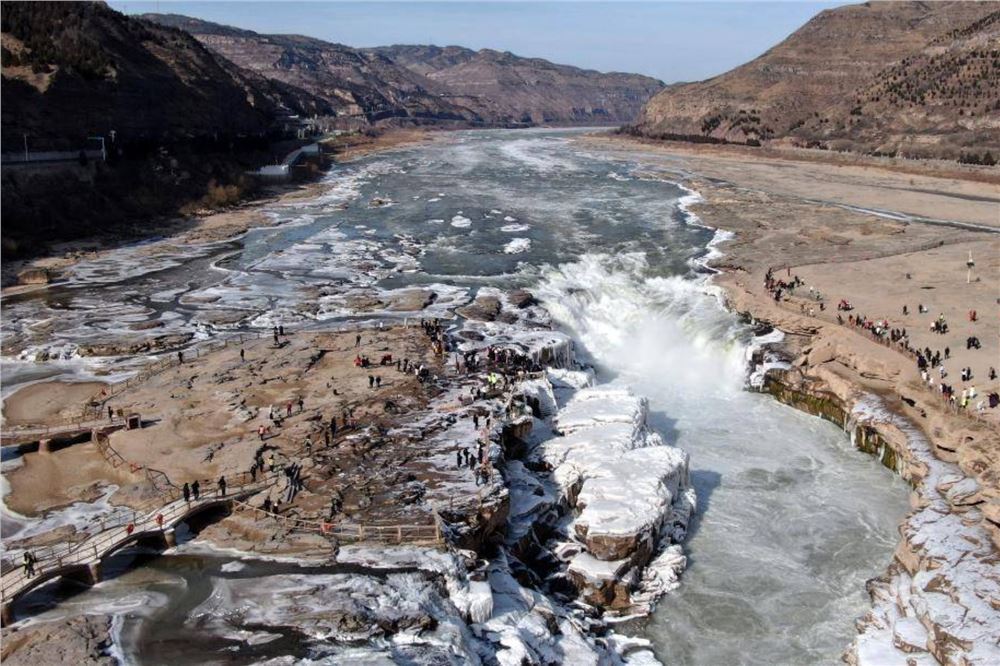 黄河壶口瀑布段出现今年首次流凌封河景观