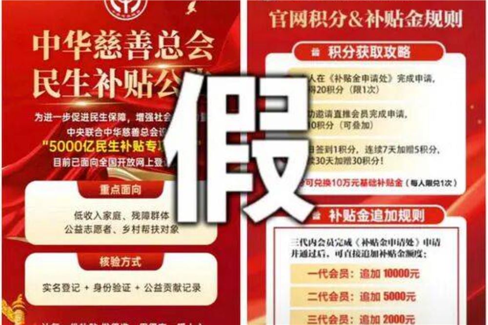 声明称:近期,中华慈善总会接到多起举报和反映,称有不法组织及个人冒用“中华慈善总会”名义,谎称联合中央有关部门开展所谓“5000亿民生补贴专项资金”补助行动,以发放“10万元补助金”为诱饵,通过建立微信群、直播授课、推广“云界”App、设立虚假网站等方式,诱骗公众参与“拉人头”活动,实施诈骗违法犯罪。此类行为严重违反国家法律法规,严重侵害人民群众财产安全与合法权益,同时严重损害了中华慈善总会的声誉与公信力。??
