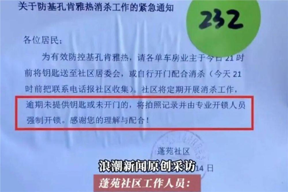 为入户消杀,广东一社区要求“单车房”上交钥匙,当地:情况属实,但已作废不再执行
