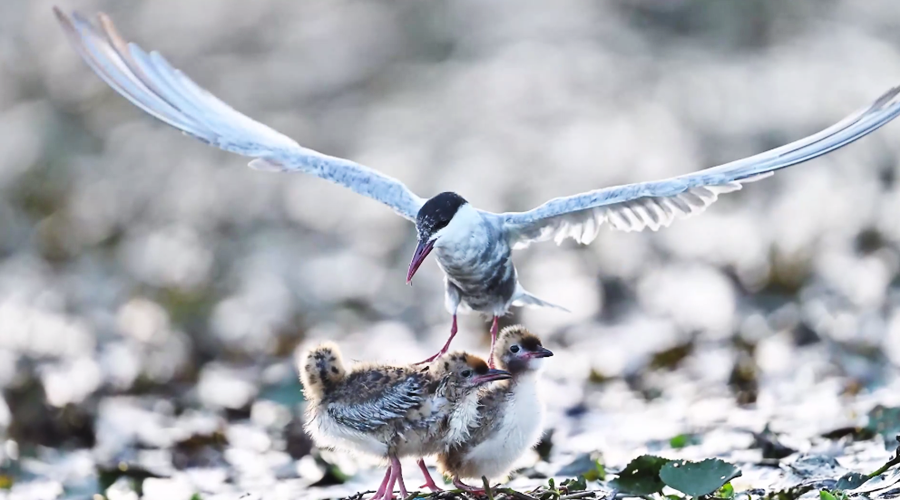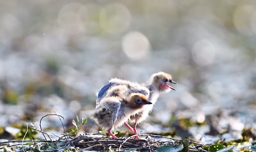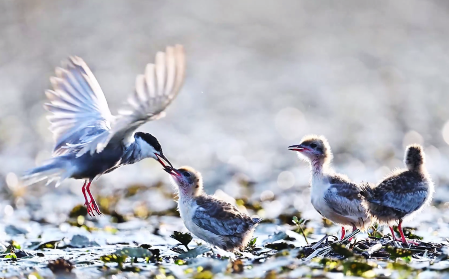 近日,在安徽省宣城市南漪湖,摄影师拍到了须浮鸥喂食幼崽的暖心画面,温馨又有爱。(李晓红)