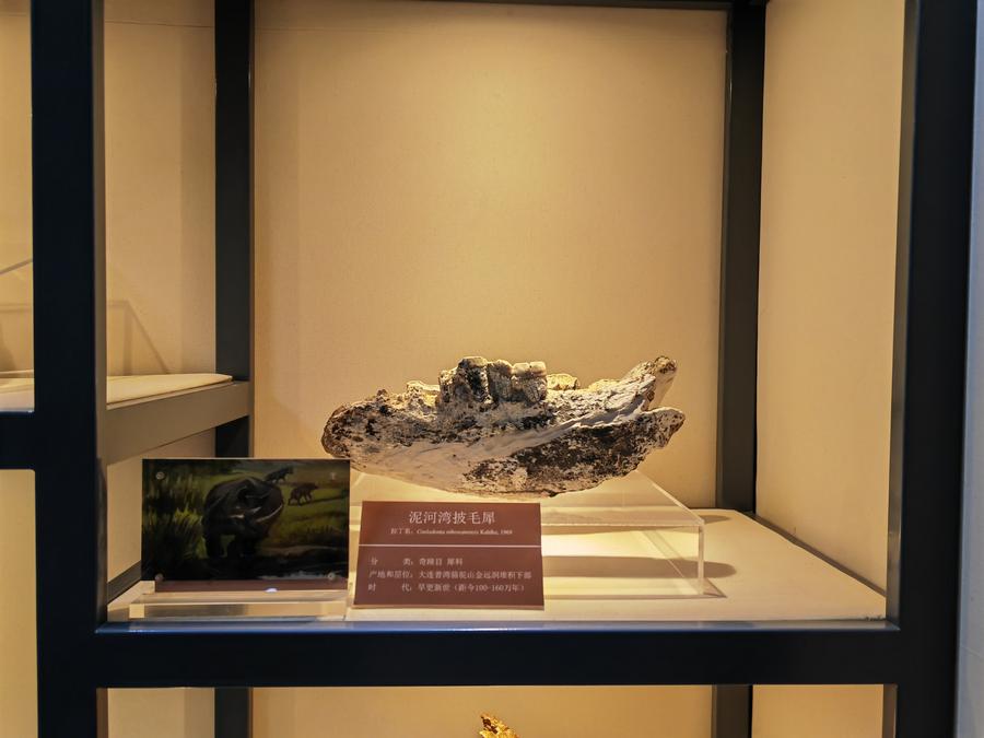 大连骆驼山遗址出土的泥河湾披毛犀化石。新华社记者 张博群 摄