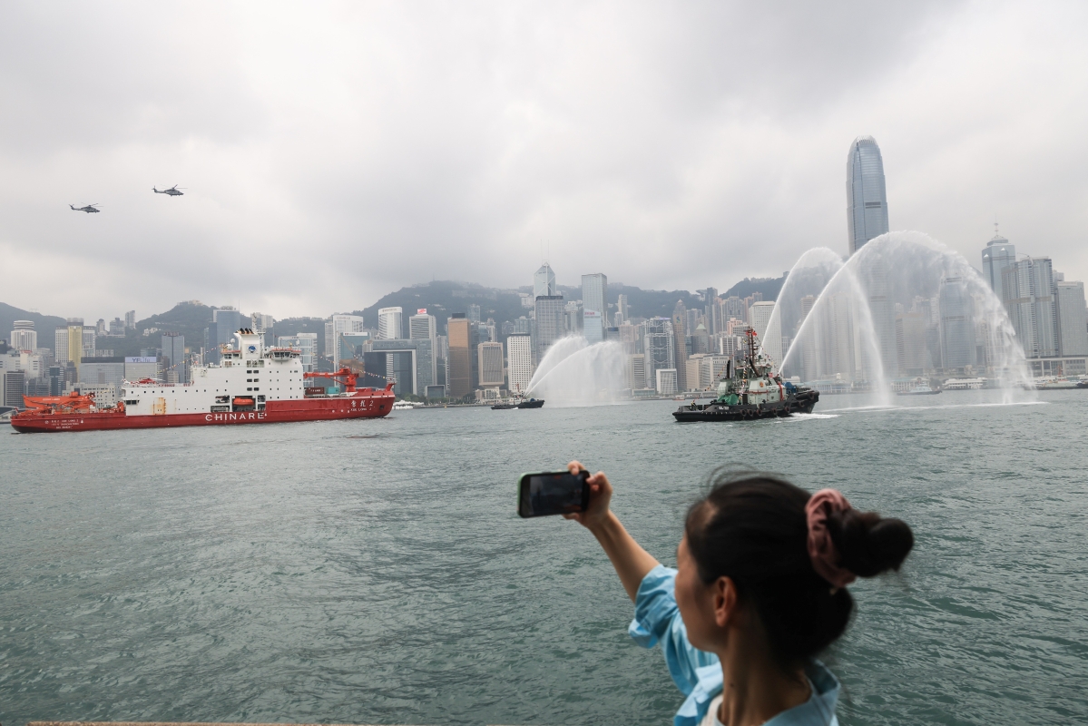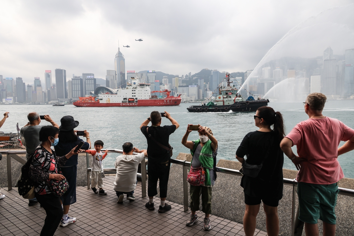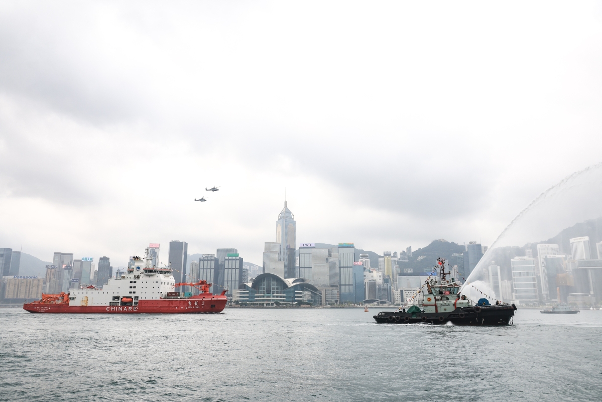 “雪龙2”号于维多利亚港巡游