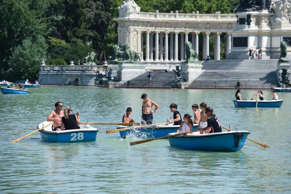 8月4日,人们在西班牙马德里的丽池公园划船。新华社发(古斯塔沃·巴连特摄)