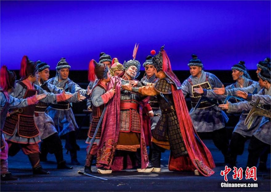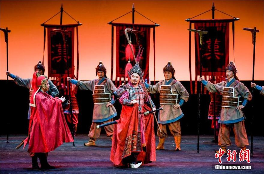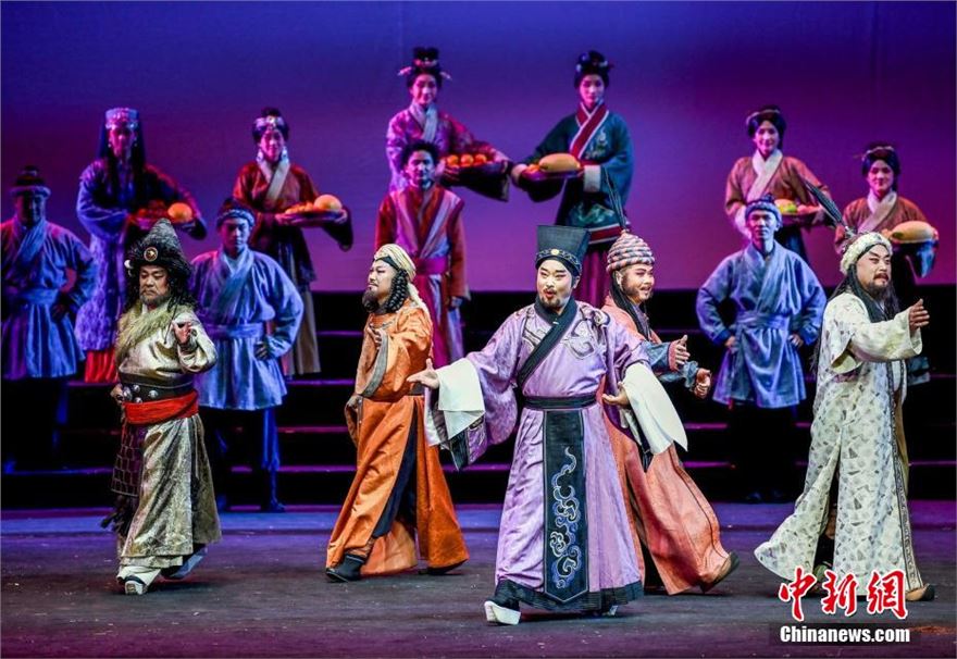 秦腔历史剧《西域汉关》在新疆人民剧场演出。