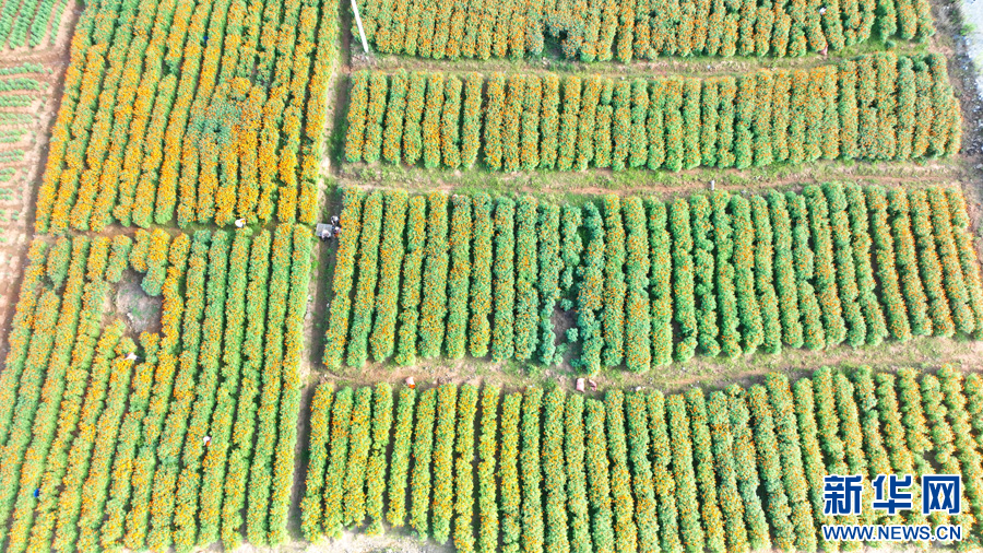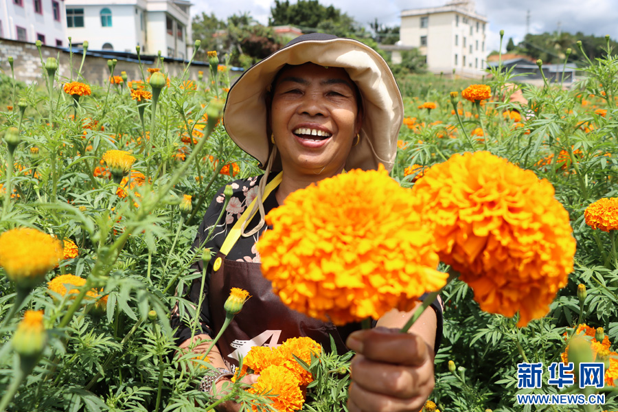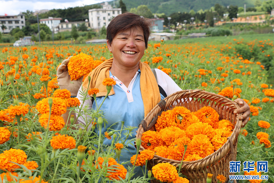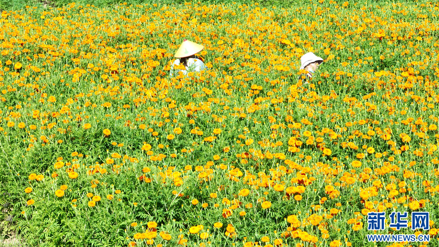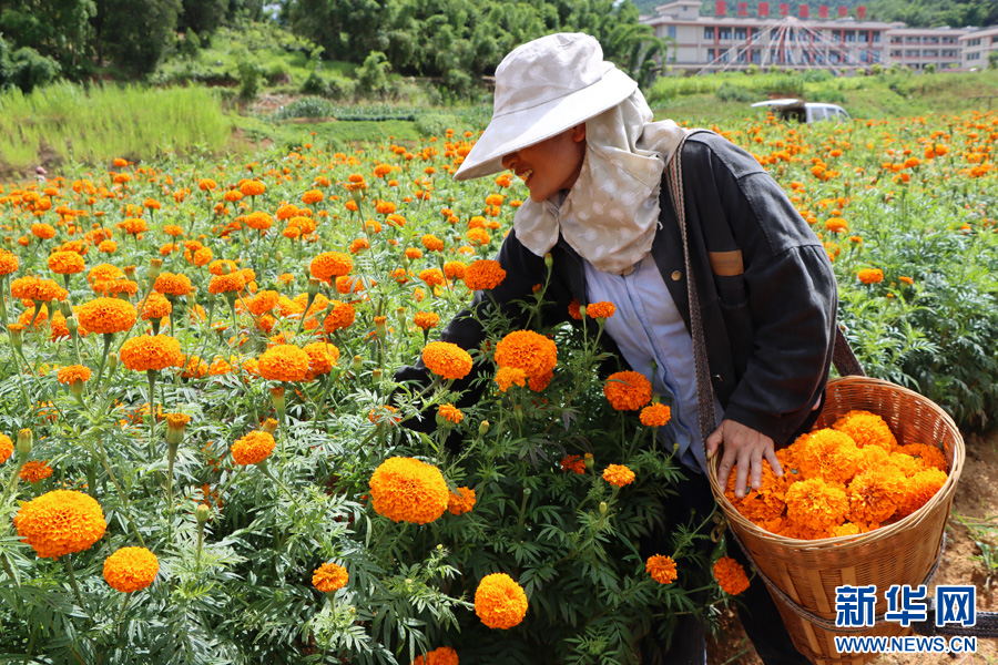 农户采收万寿菊 (7月28日摄)。新华网发(墨江县融媒体中心供图)