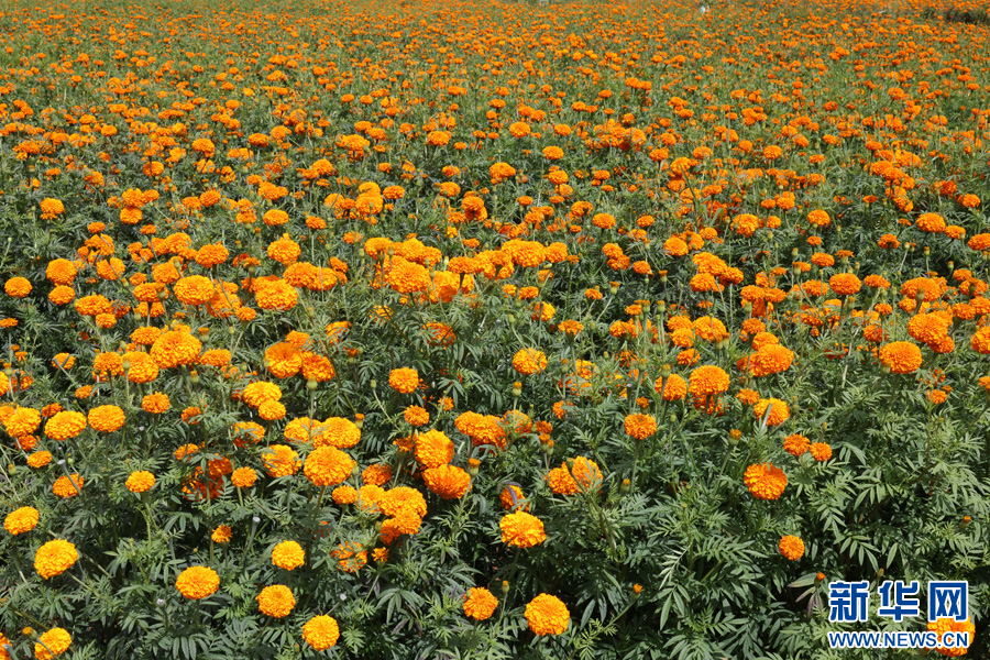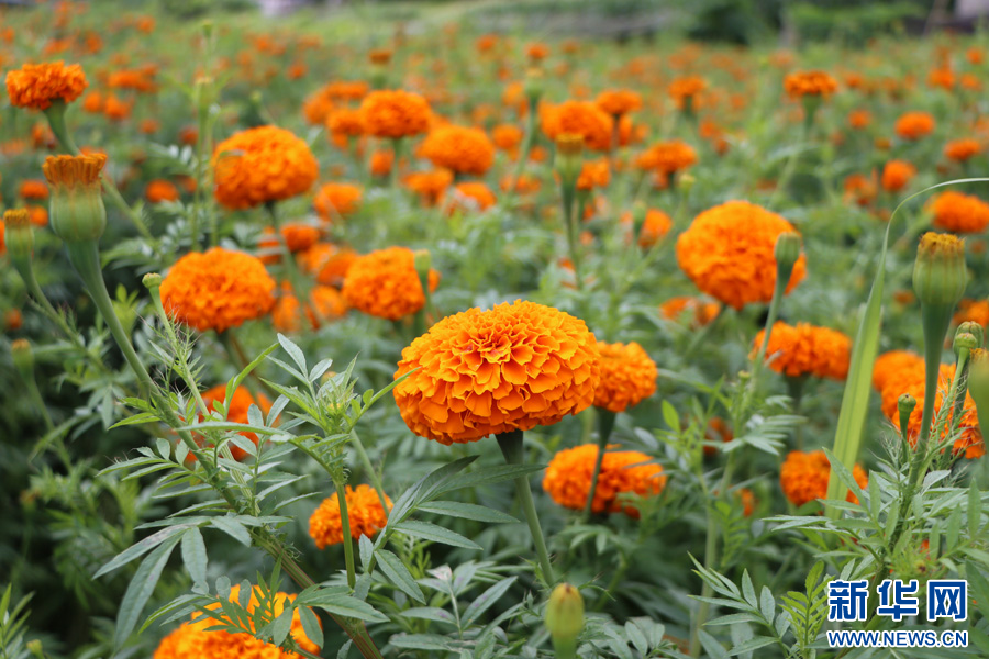 盛开的万寿菊 (7月28日摄)。新华网发(墨江县融媒体中心供图)