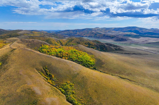 这是9月20日拍摄的罕山秋景(无人机照片)。罕山国家级自然保护区2013年成立,位于内蒙古自治区通辽市扎鲁特旗,这里地处大兴安岭南麓,是科尔沁草原的生态屏障和水源涵养地。秋日时节,罕山层林尽染,美不胜收。新华社记者 连振 摄