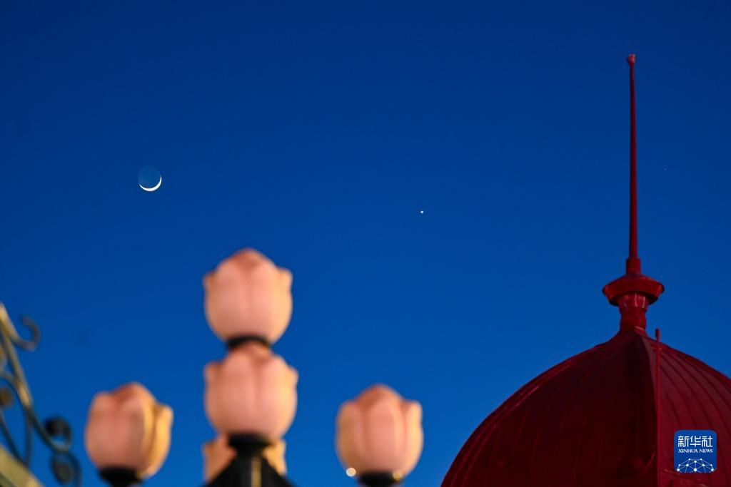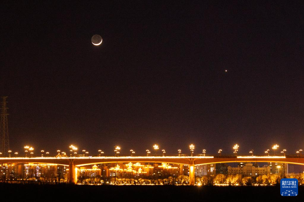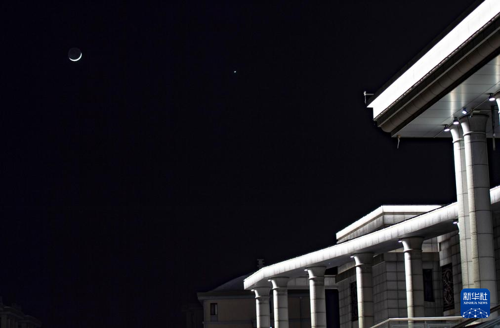 3月2日在黑龙江省哈尔滨市拍摄的金星伴月。新华社发(原勇摄)