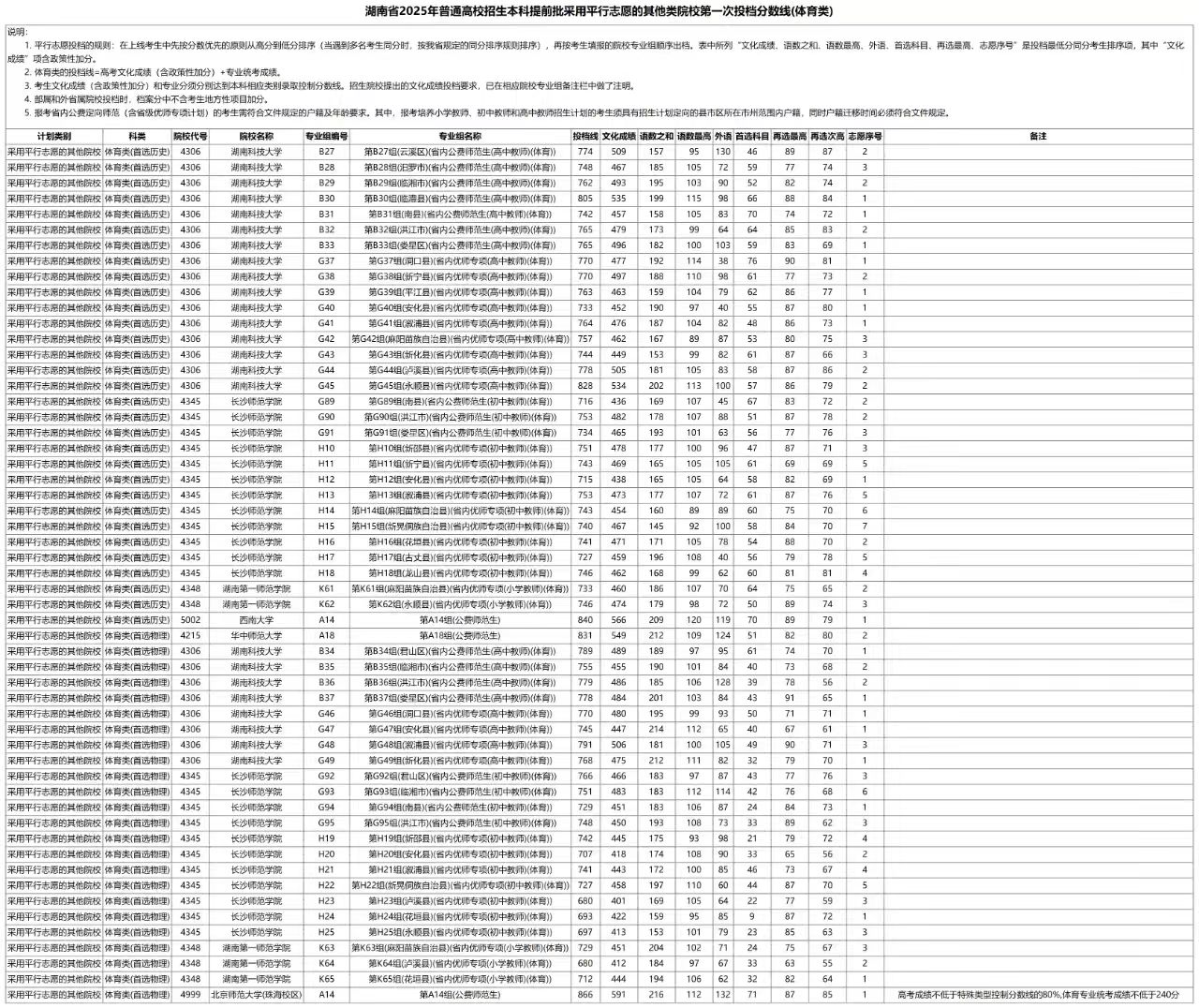 7月9日,湖南省2025年普通高校招生本科提前批采用平行志愿的其他类院校第一次投档分数线(体育类)发布: