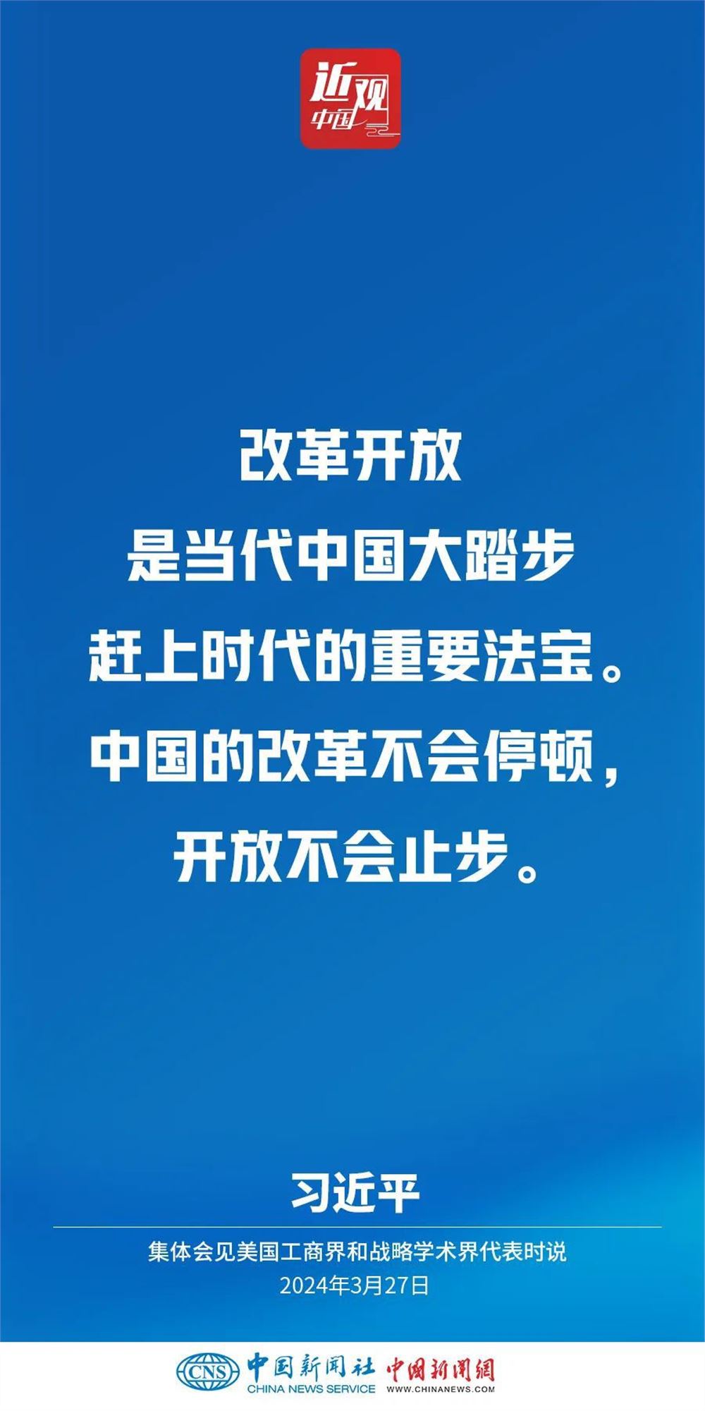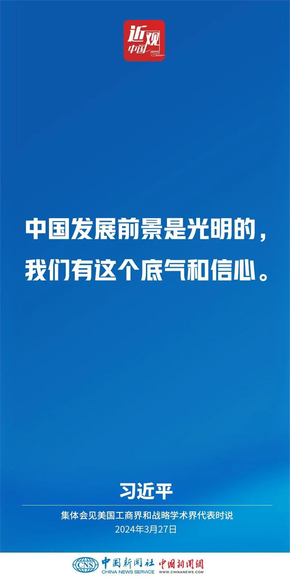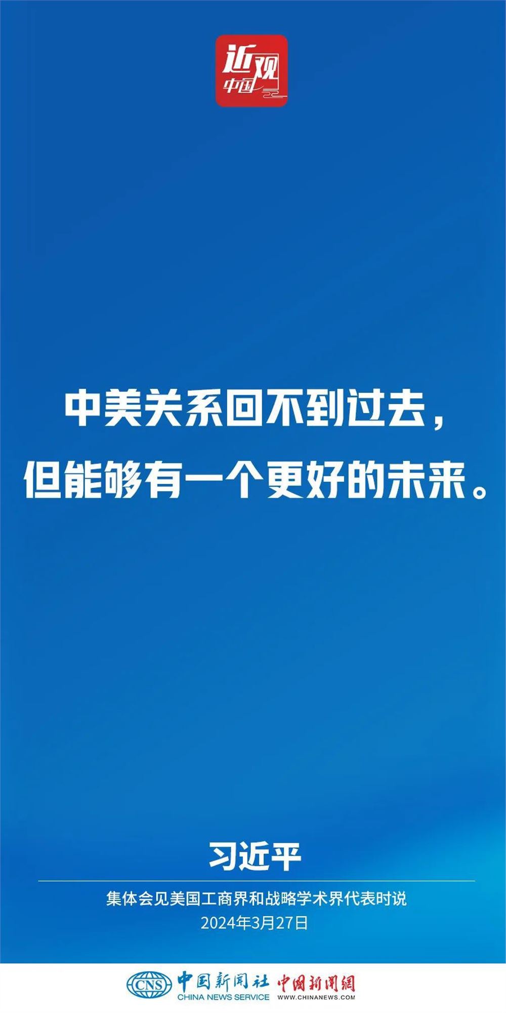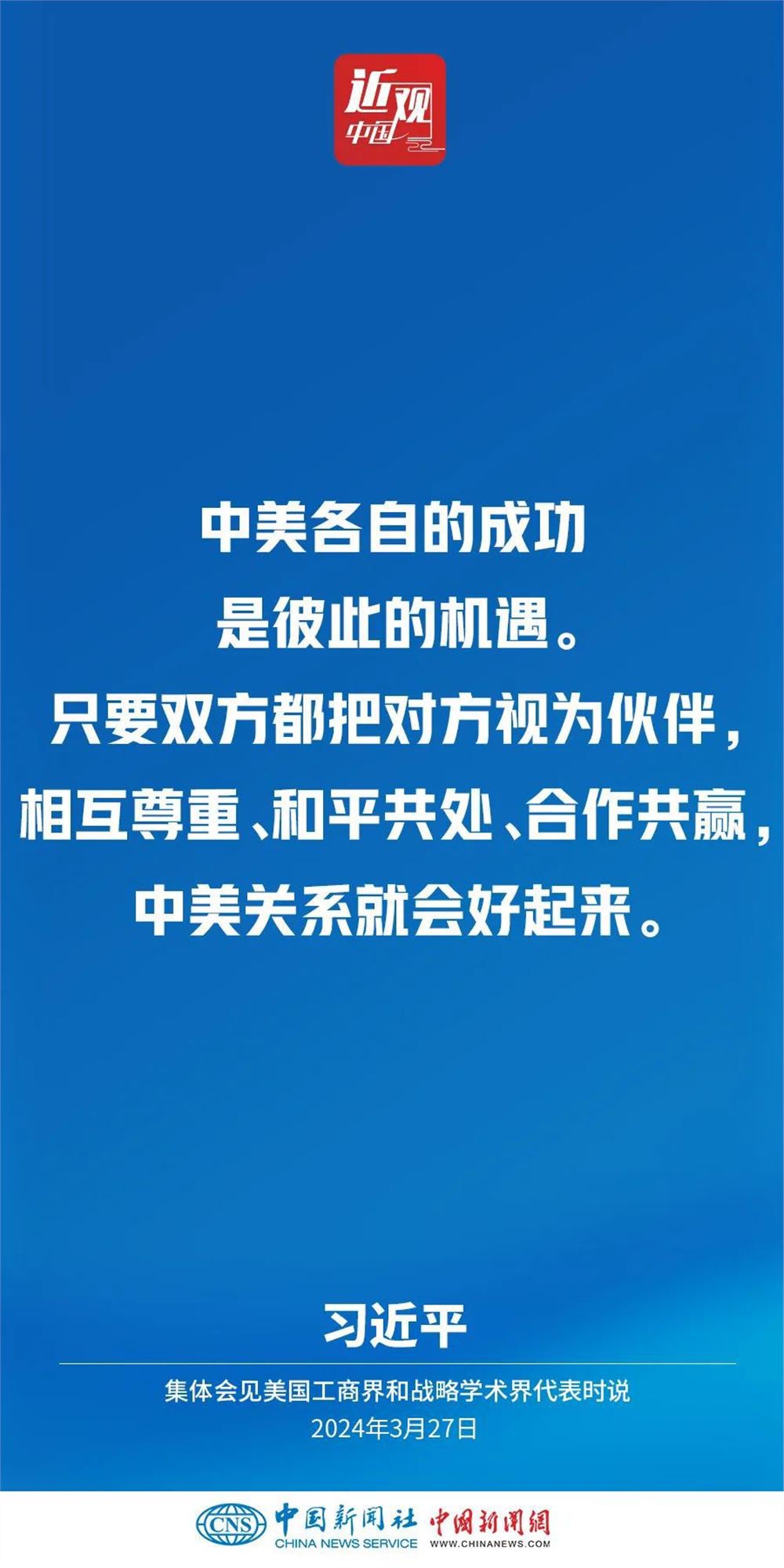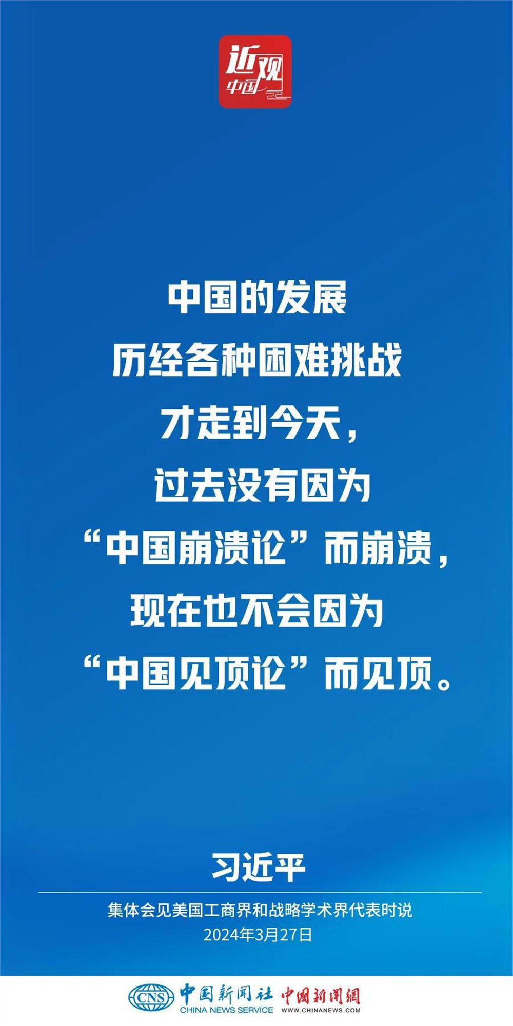 3月27日,国家主席习近平在北京人民大会堂集体会见美国工商界和战略学术界代表。习近平指出——
