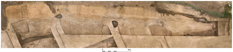 斗山遗址发现的马家浜文化时期的墙体与壕沟(部分)。(江苏省文物考古研究院供图)