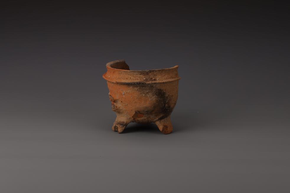 斗山遗址出土的马家浜文化时期的陶鼎。(江苏省文物考古研究院供图)