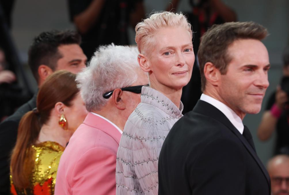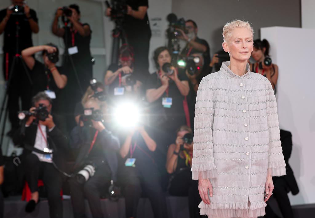 9月2日,在意大利威尼斯举行的第81届威尼斯国际电影节上,主竞赛单元影片《隔壁房间》演员蒂尔达·斯文顿亮相首映式红毯。新华社记者 李京 摄