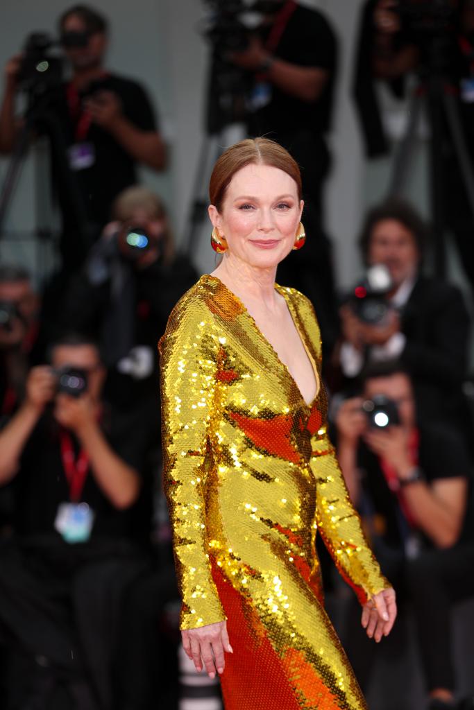 9月2日,在意大利威尼斯举行的第81届威尼斯国际电影节上,主竞赛单元影片《隔壁房间》演员朱丽安·摩尔亮相首映式红毯。新华社记者 李京 摄