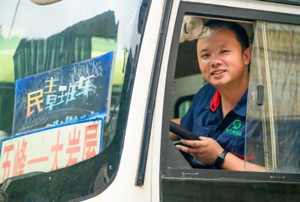 邓兰舟驾驶的公交车被挂牌“民主早班车”。