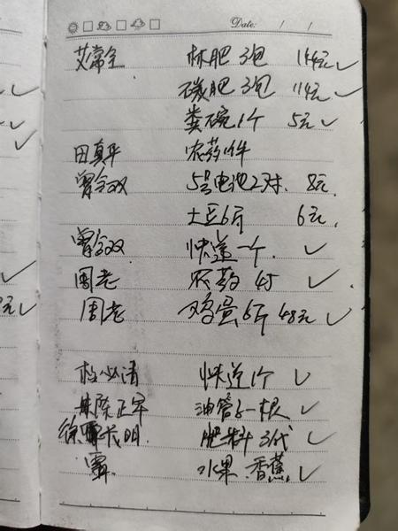 “艾常全:磷肥3包、碳肥3包、粪碗1个……”晚上6点,公交车驾驶员邓兰舟把大巴车开回家后,掏出自己随身携带的笔记本,里面有他给山里村民的“带货清单”。在这份清单上相应物品名称后面打上对钩,他一天辛苦的工作才算真正完成。