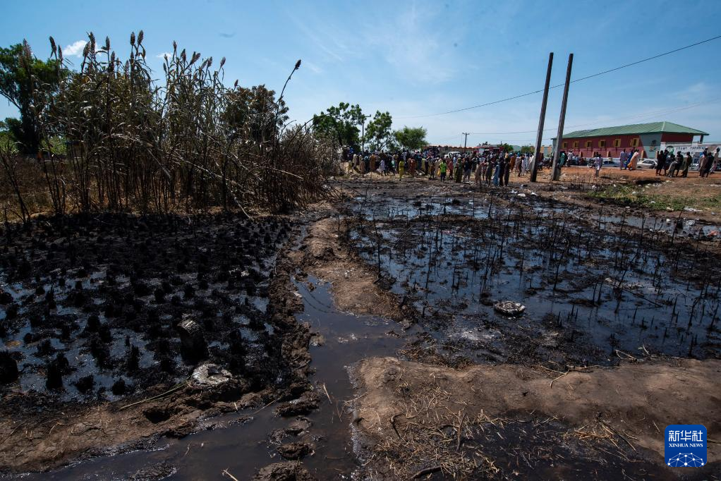 10月16日,在尼日利亚马吉亚镇,人们聚集在油罐车爆炸事故现场。新华社/美联