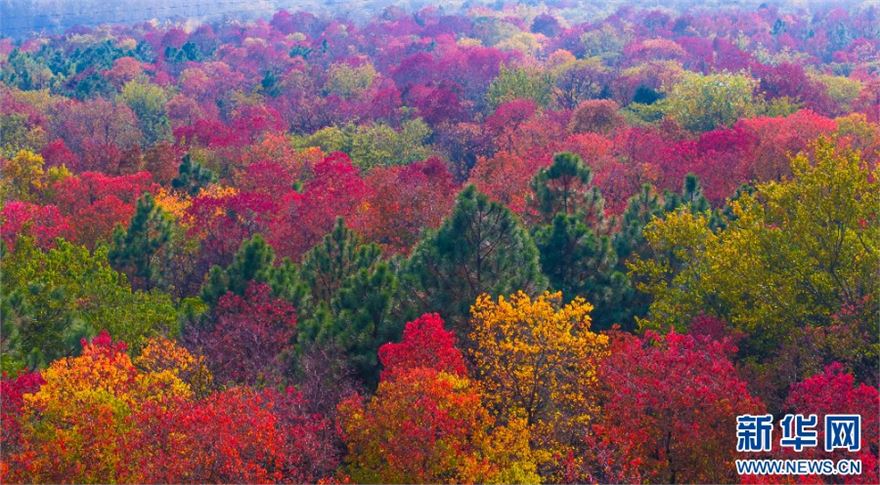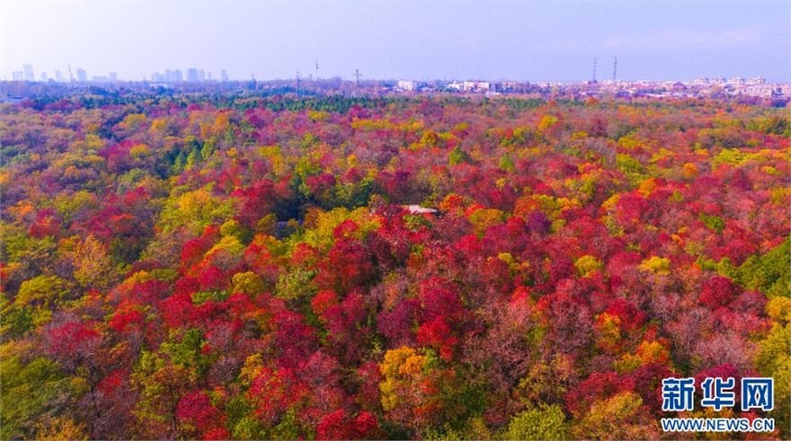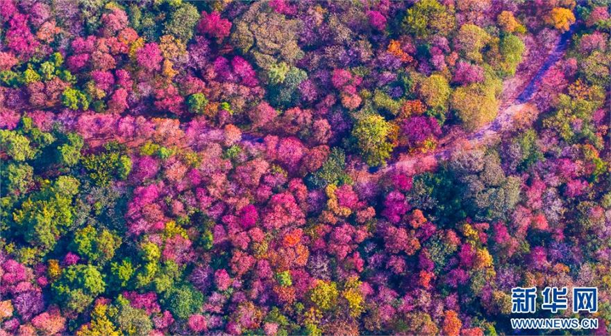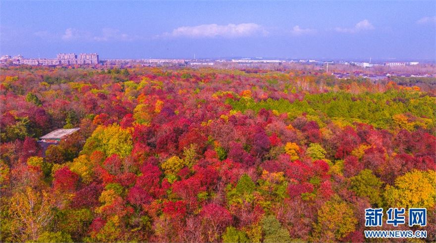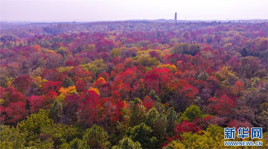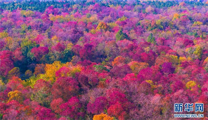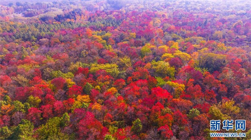 初冬时节,宿迁三台山国家森林公园在无人机的镜头下展现出一幅艳丽唯美的画卷。金黄、火红、深褐的树叶汇成绚丽的海洋,美得令人沉醉。(崔雯雯 杨群)