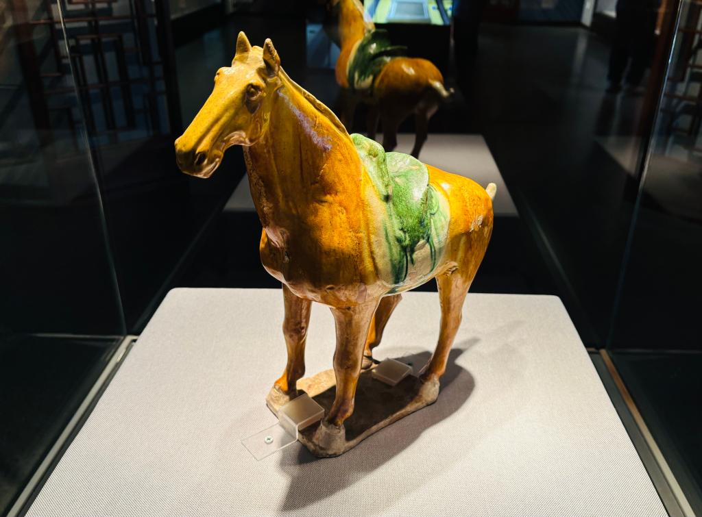 天津博物馆展出的唐三彩马。新华社记者 周润健 摄
