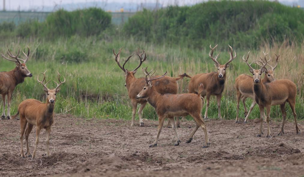 这是6月7日在江苏盐城东台条子泥湿地拍摄的麋鹿。