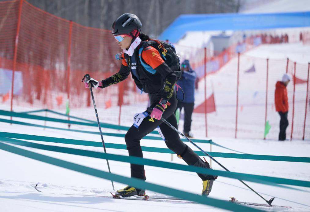 图为索朗曲珍在哈尔滨亚冬会滑雪登山比赛中。新华社记者 胡虎虎 摄