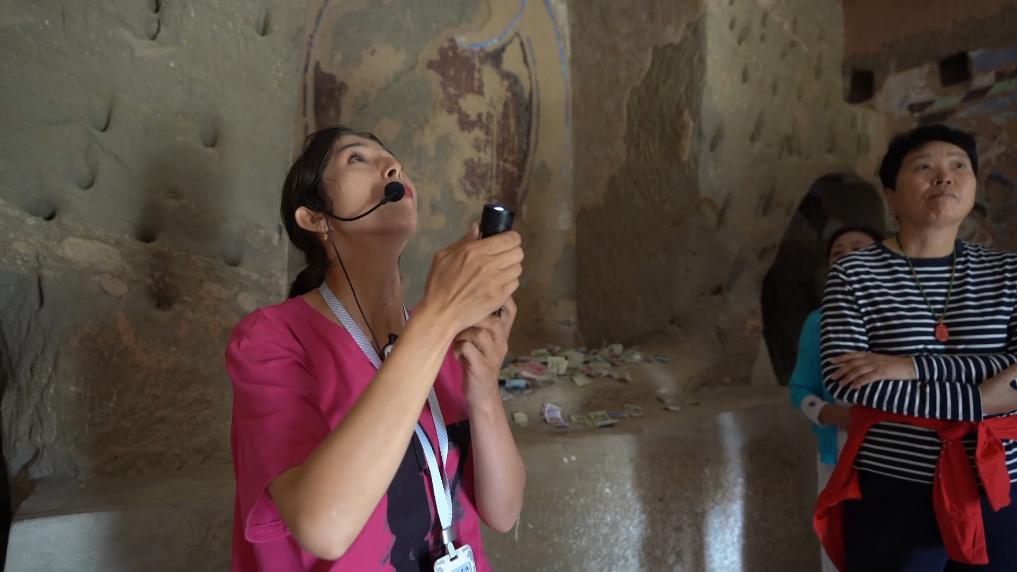 2017年,阿娜尔古丽来到克孜尔石窟,成为一名讲解员。在向游客讲解克孜尔石窟的过程中,阿娜尔古丽深切感到,这项工作为她打通了连接历史的“时空隧道”,让她得以了解更多的当地历史。