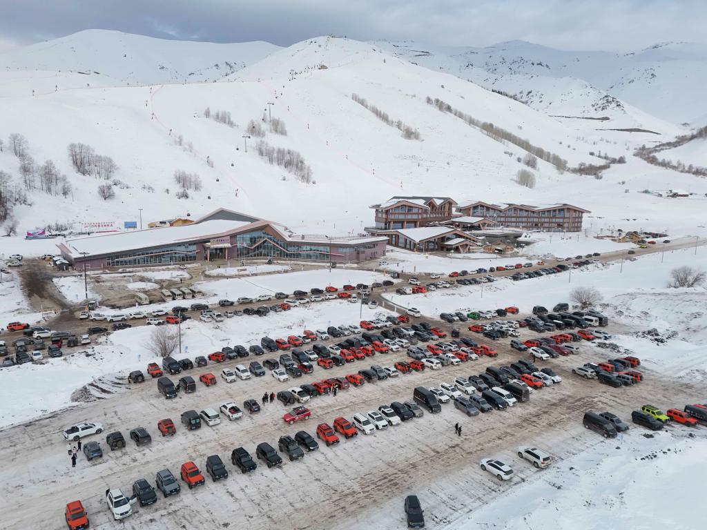 游客车辆停靠在吉克普林国际滑雪度假区东区服务大厅前(11月30日摄)。新华社记者 胡虎虎 摄