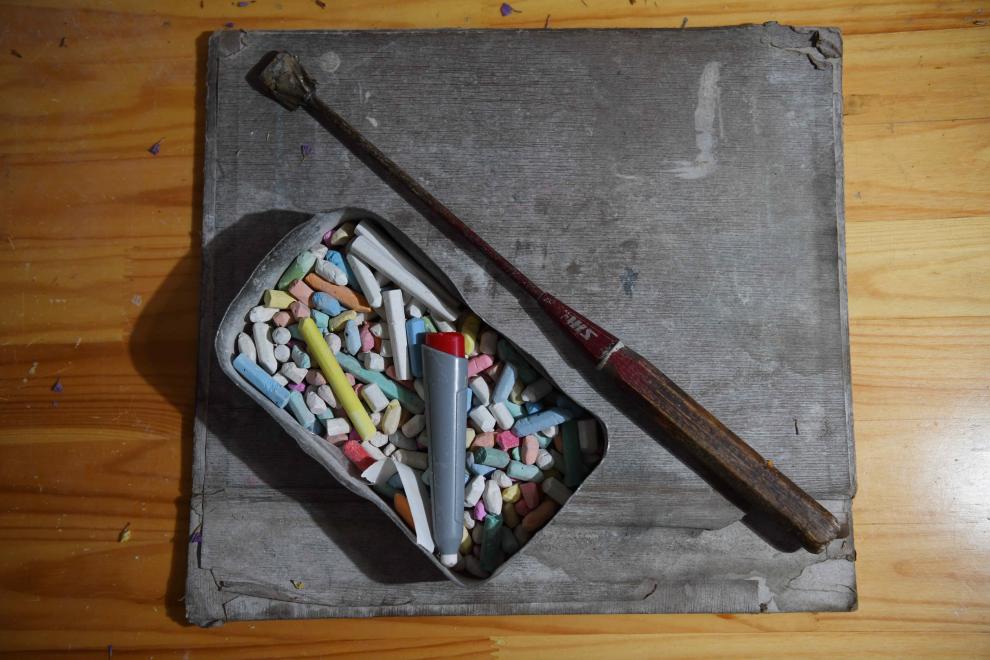 这是2023年9月8日拍摄的叶连平使用多年的教鞭和粉笔盒。新华社记者 张端 摄
