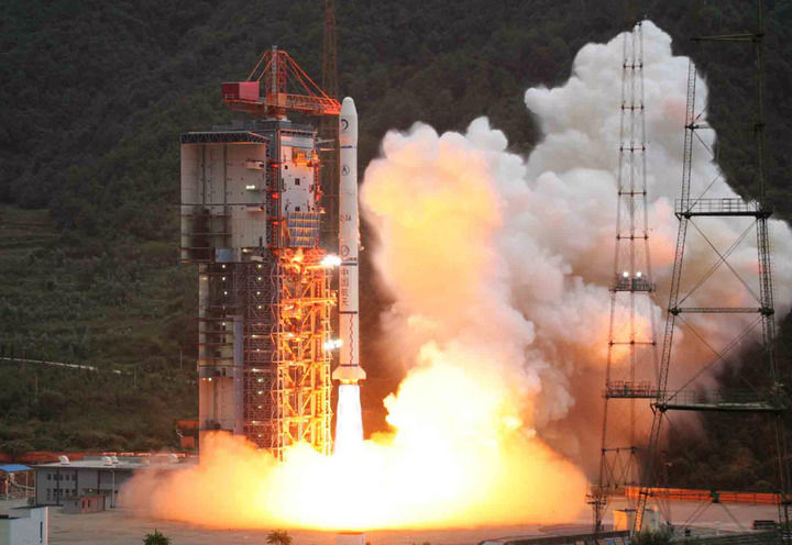 2007年10月24日,搭载着我国首颗探月卫星嫦娥一号的长征三号甲运载火箭在西昌卫星发射中心三号塔架点火发射。新华社记者 李刚 摄