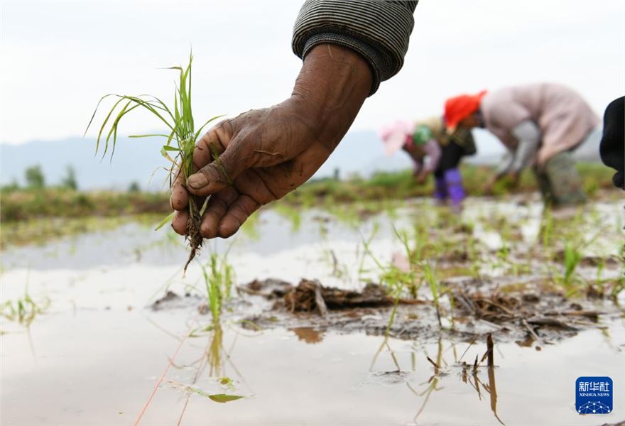 61.jpg5月5日,农民在云南省丽江市古城区金山街道东元社区的农田里移栽水稻秧苗。